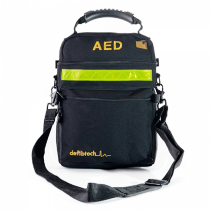 De AED draagtas is gemaakt van stevig nylon, heeft een handvat en duidelijk reflecterende veiligheidsstrip.